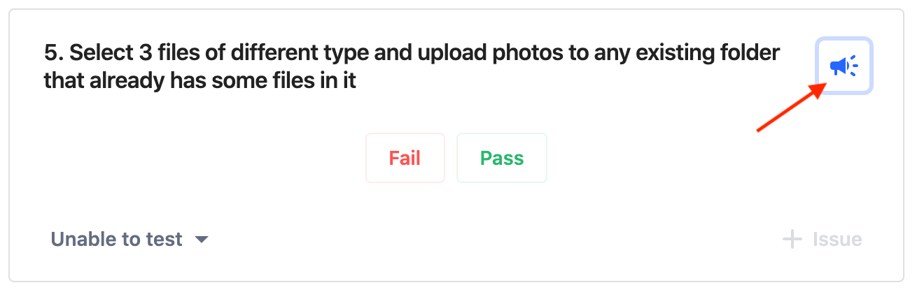 Testers can add feedback about each step to help enhance the test. It can be done regardless of what option (Pass, Fail, and Unable to Test) they have selected for the particular step.