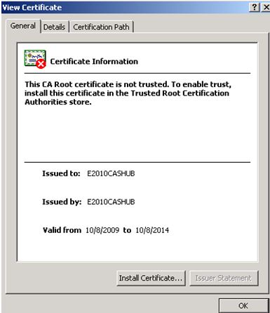 Click the "Install Certificate" button to launch the Certificate Import Wizard. The certificate must be imported into the "Trusted Root Certification Authorities" certificate store, so override the automatic certificate store selection.