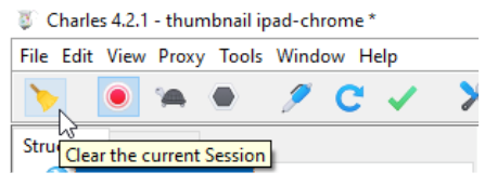 a) Clear the current session in Charles by clicking on the Broom Icon