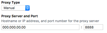 4. Input your IP address of the machine running Charles and 8888 (default) for the port.*