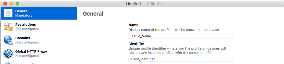 1. Open Apple Configurator and navigate to File -> New Profile.