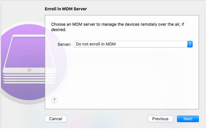 Enroll in MDM Server - select: Do not enroll in MDM.