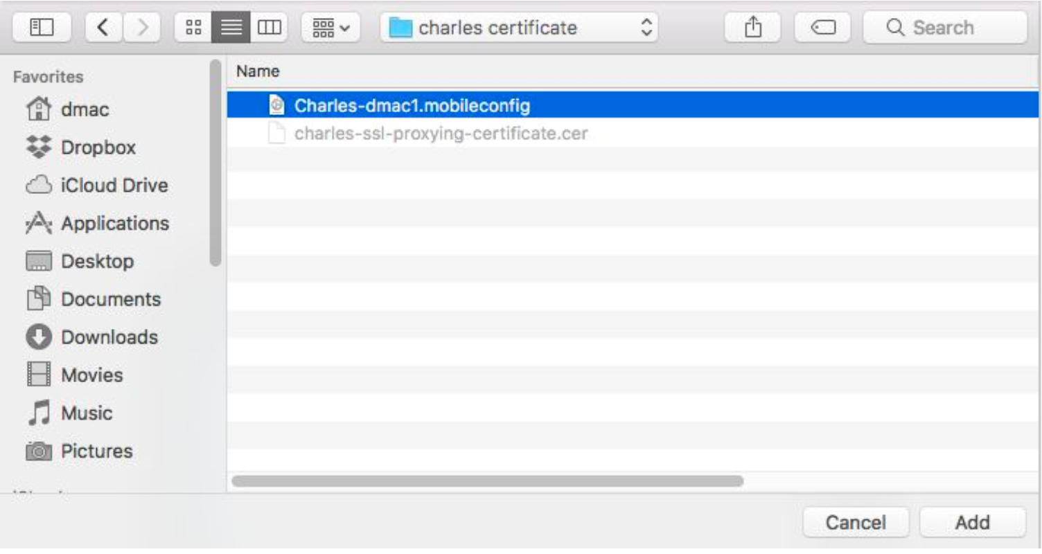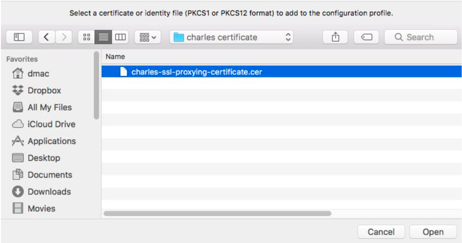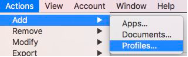 Select Profiles, find the profile (the .mobileconfig file) you created, then click Add Profiles.
