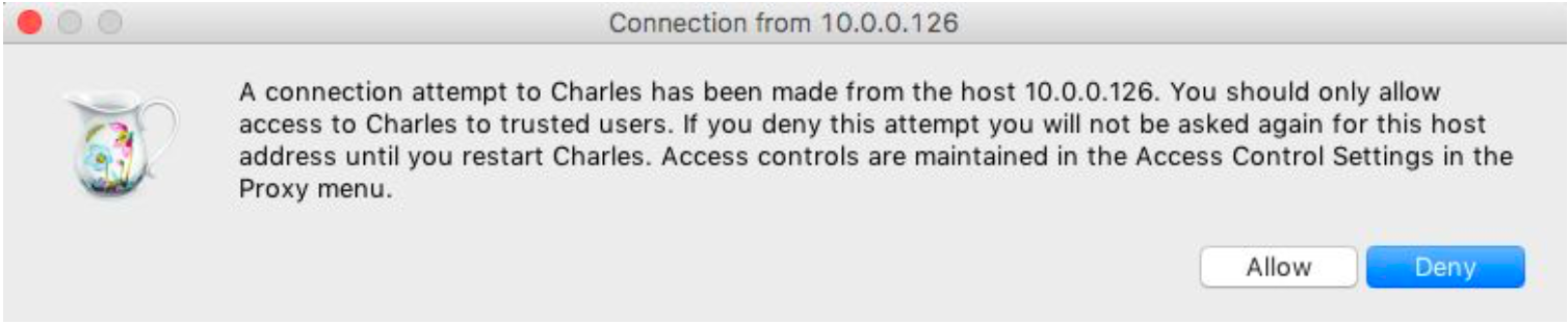 After the Profile installs, you see a Connection request on your computer running Charles Proxy. Click Allow.