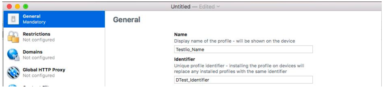 Close the Profile by clicking the red circle and save the configuration (as a .mobileconfig file).