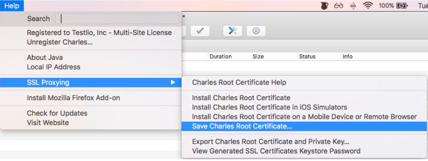Open Charles and navigate to Help > SSL Proxying > Save Charles Root Certificate.