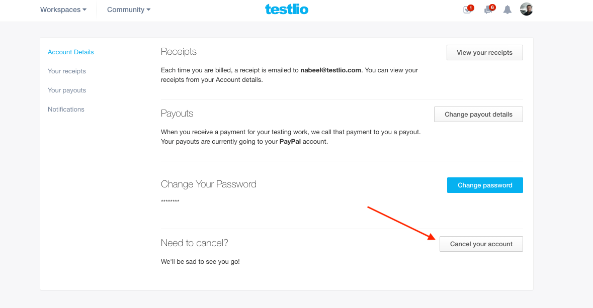 Please keep in mind that we cannot restore a canceled account, so we strongly advise you to make sure you want to cancel your Testlio account permanently.