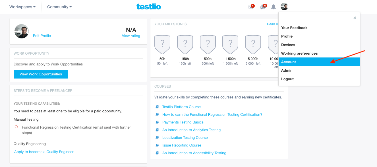 Once you are ready, click on your avatar and navigate to the Account tab.