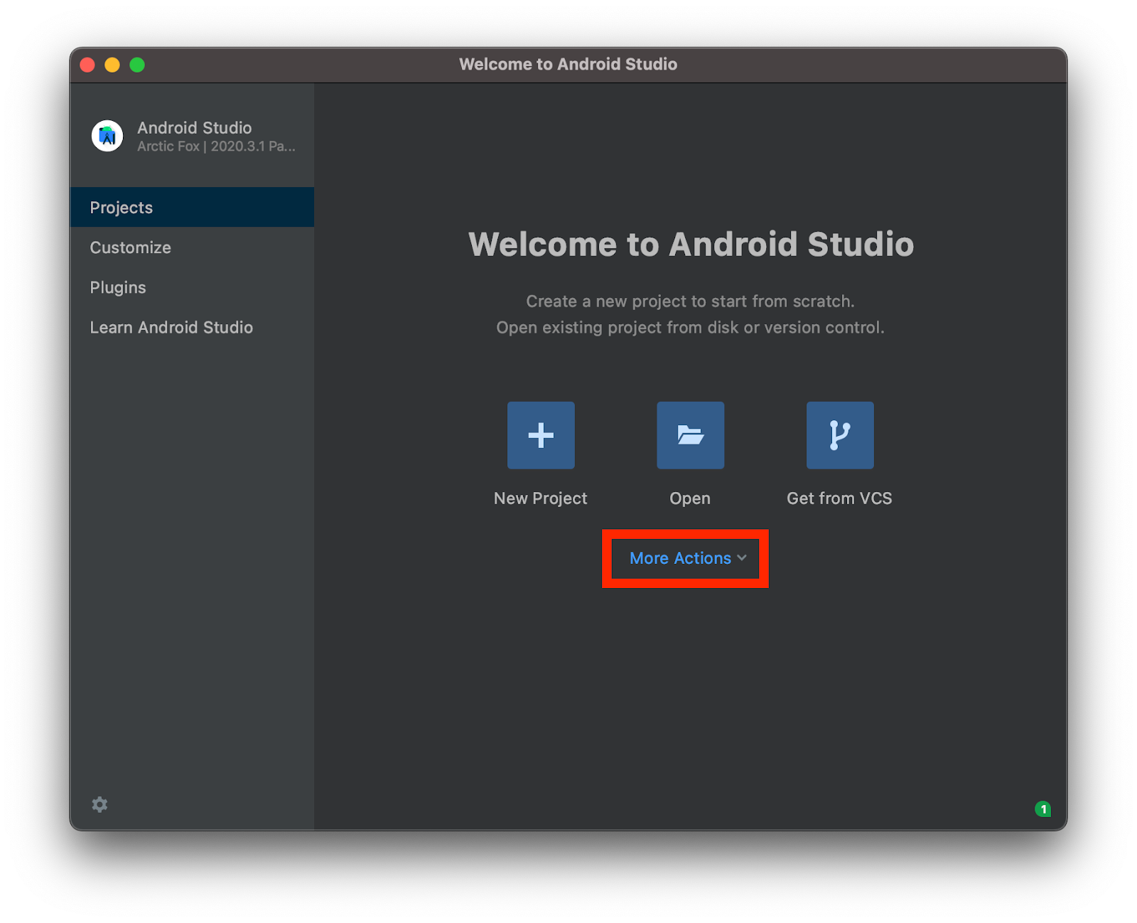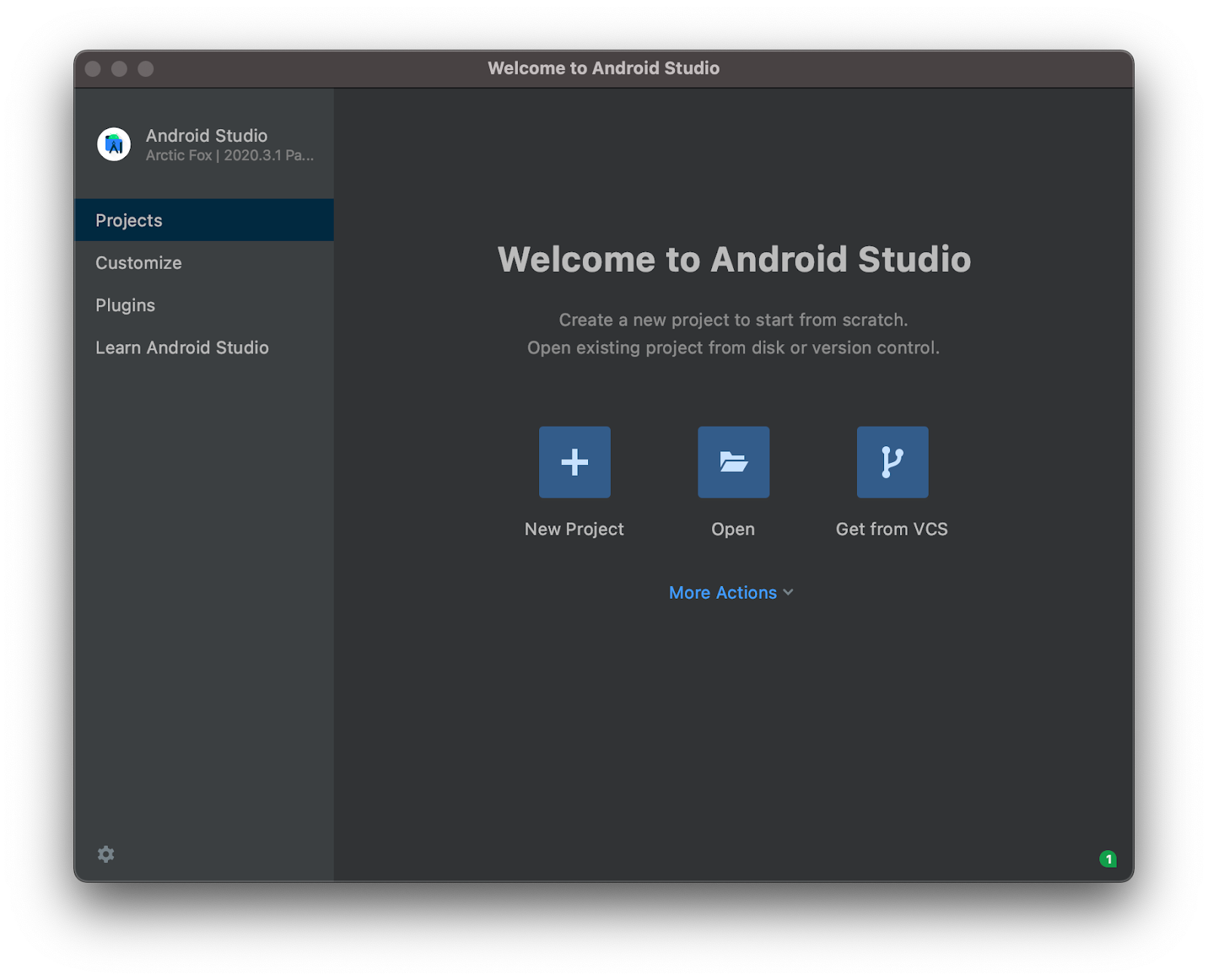 Android Studio welcome screen