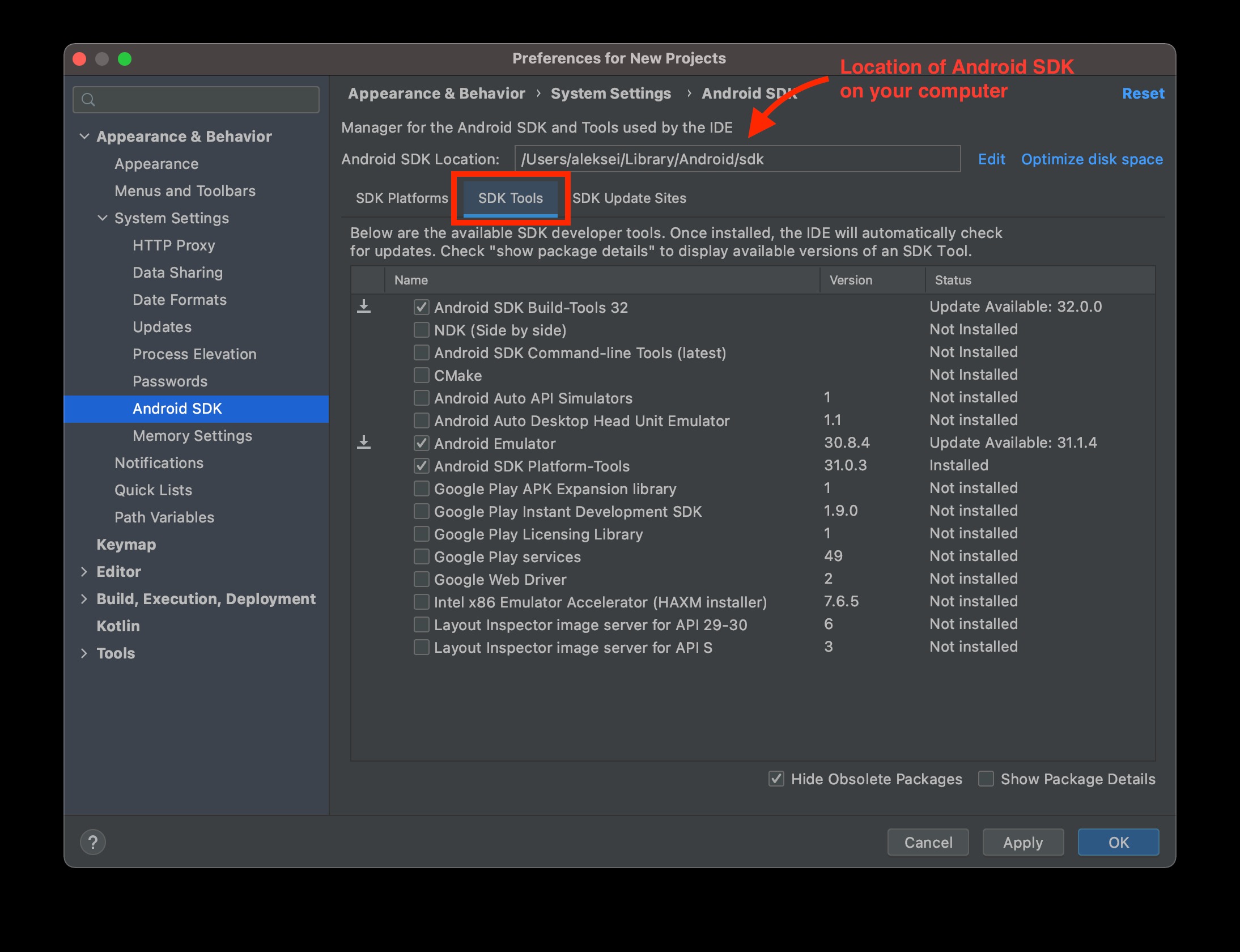 Install Android SDK platform tools using Android Studio