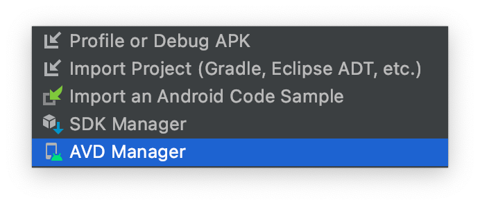 AVD Manager item in the More Actions dropdown