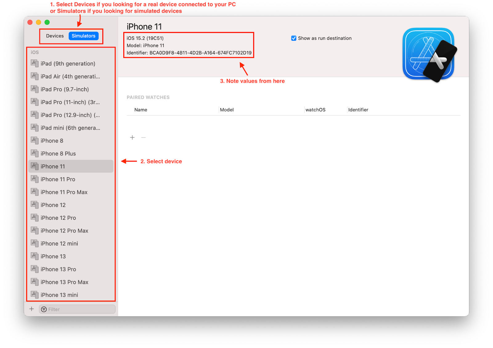 How to launch iOS device simulator from XCode
